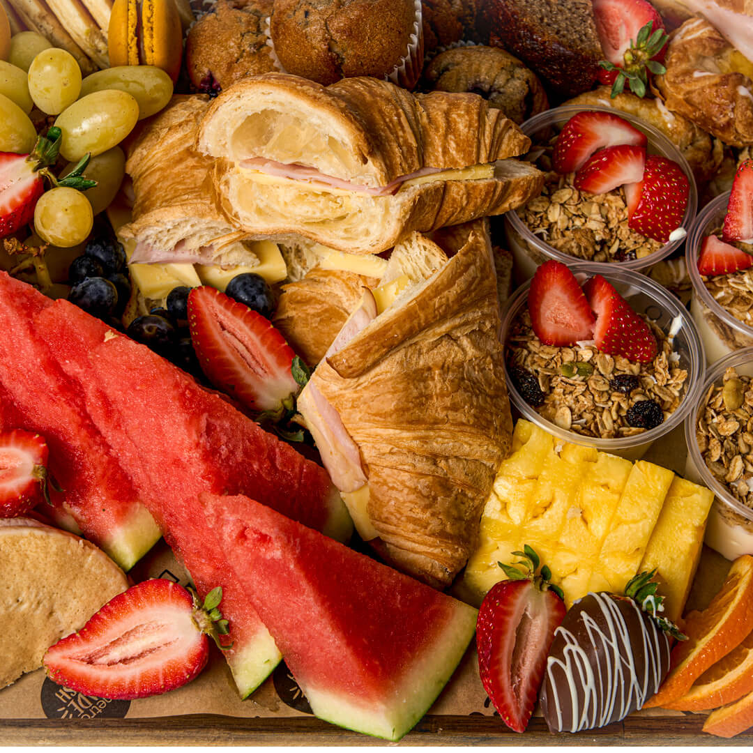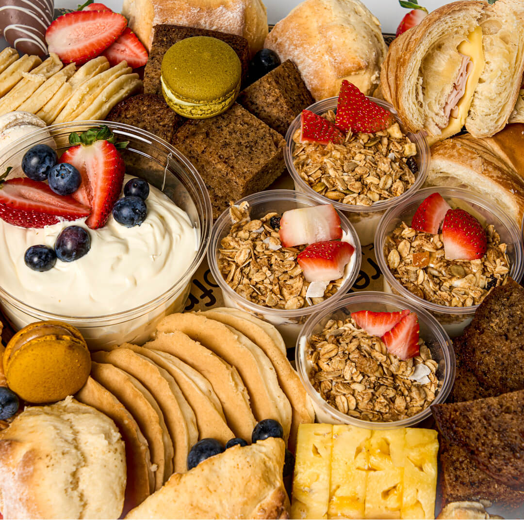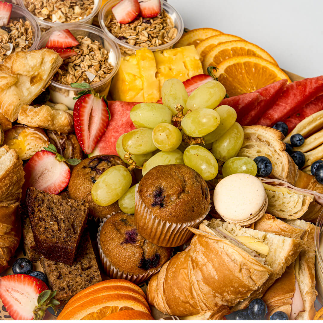 Serves approx. 10-15 people | Indulge in a delightful morning feast with our Breakfast Grazing Board, perfect for gatherings of 10-15 people. This beautifully arranged selection is designed to satisfy every palate, making your breakfast experience both memorable and delicious.